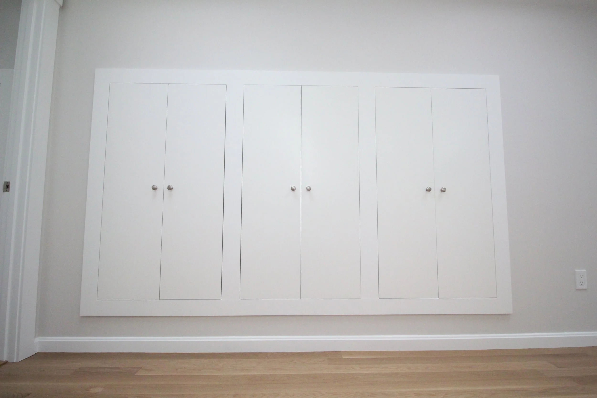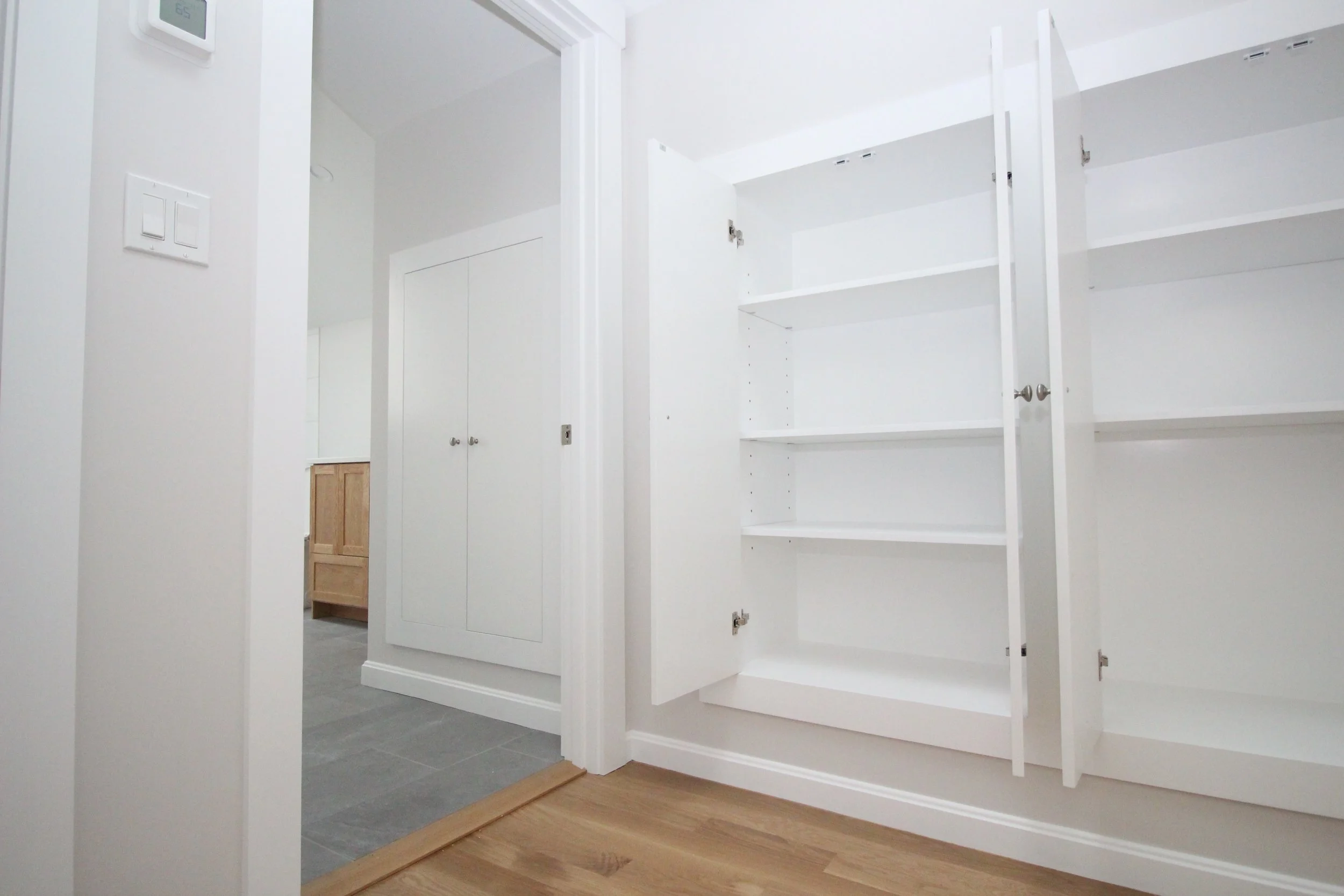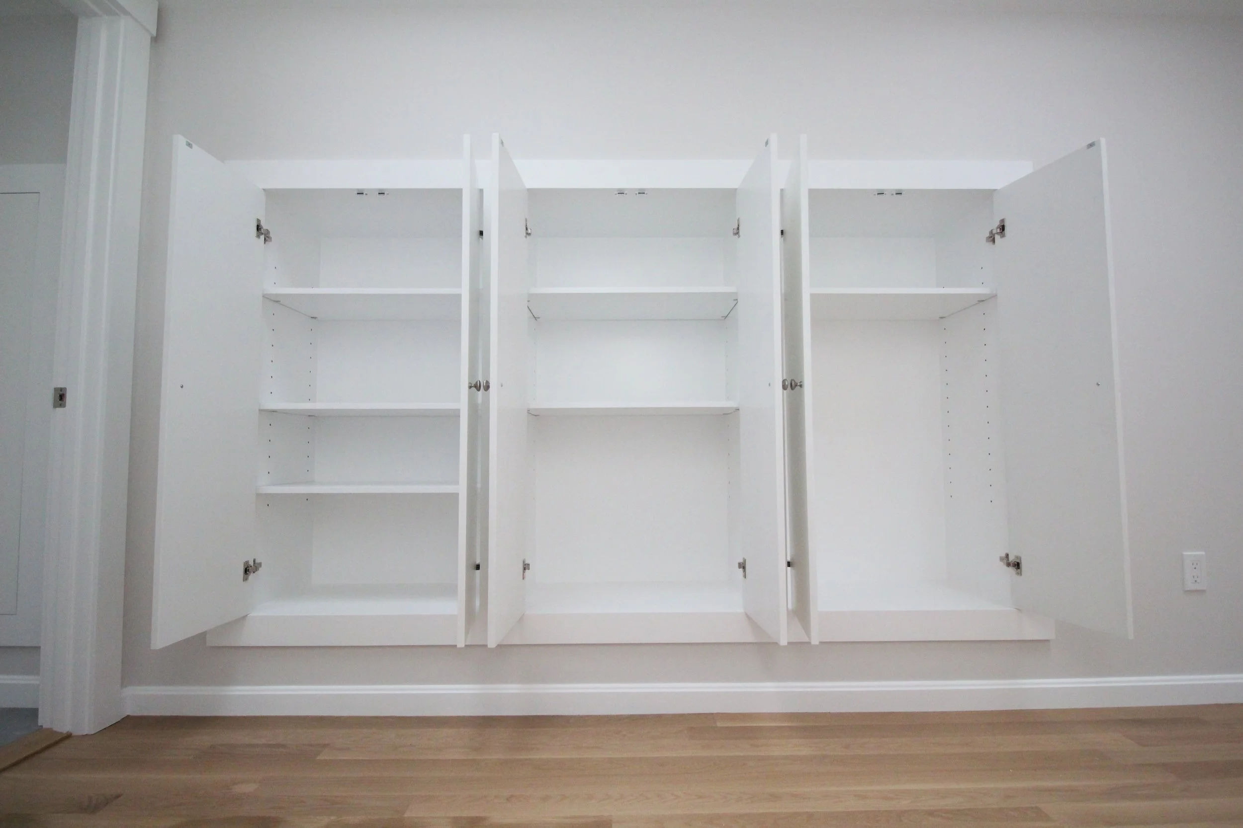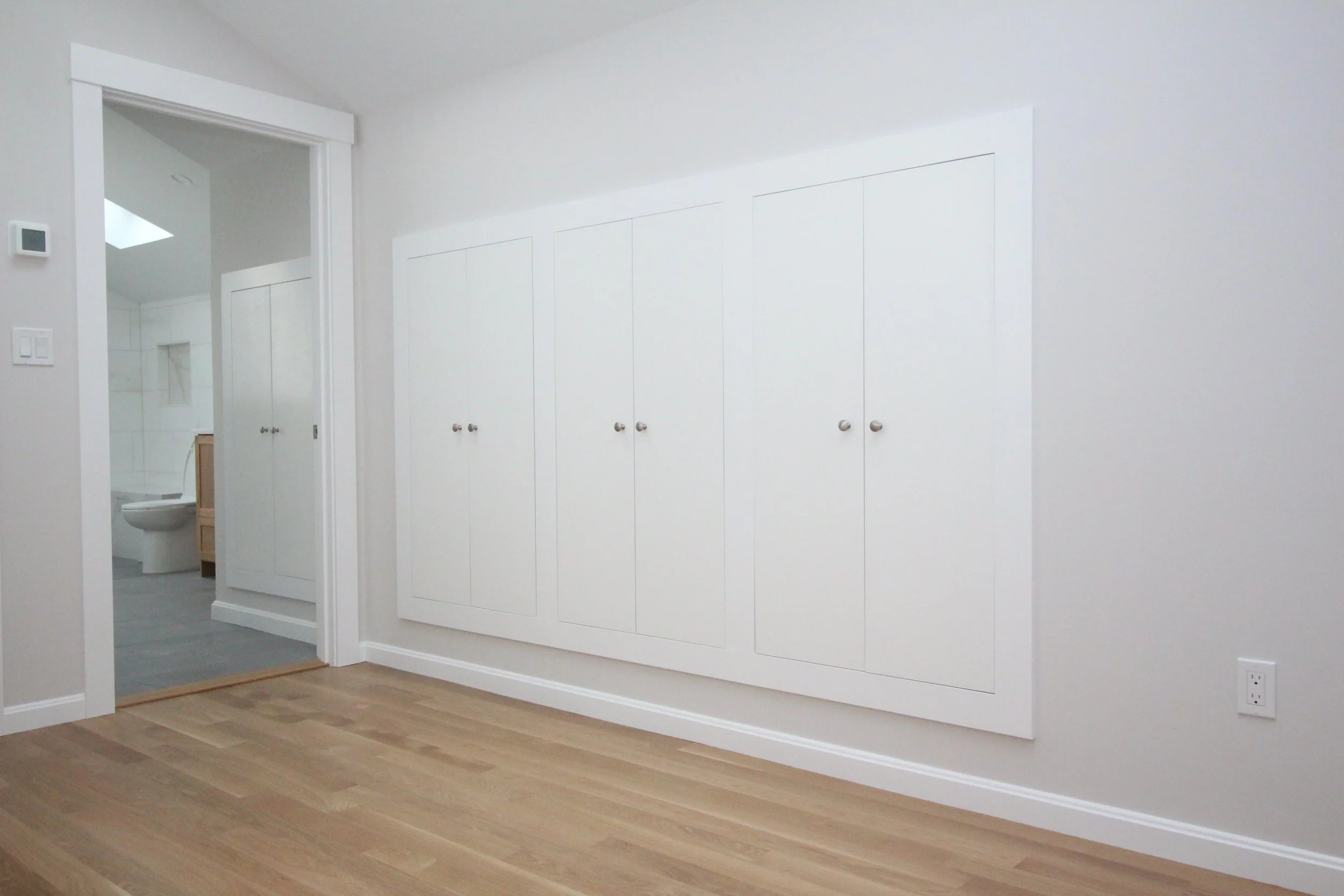 These were part of a Beverly Cove residential addition we worked on in mid/late 2024. A cathedral ceiling from downstairs rises up only ~24 inches behind this wall, limiting the floor space available below these units. However, it also means a ton of empty space left behind this wall that was prime for storage!