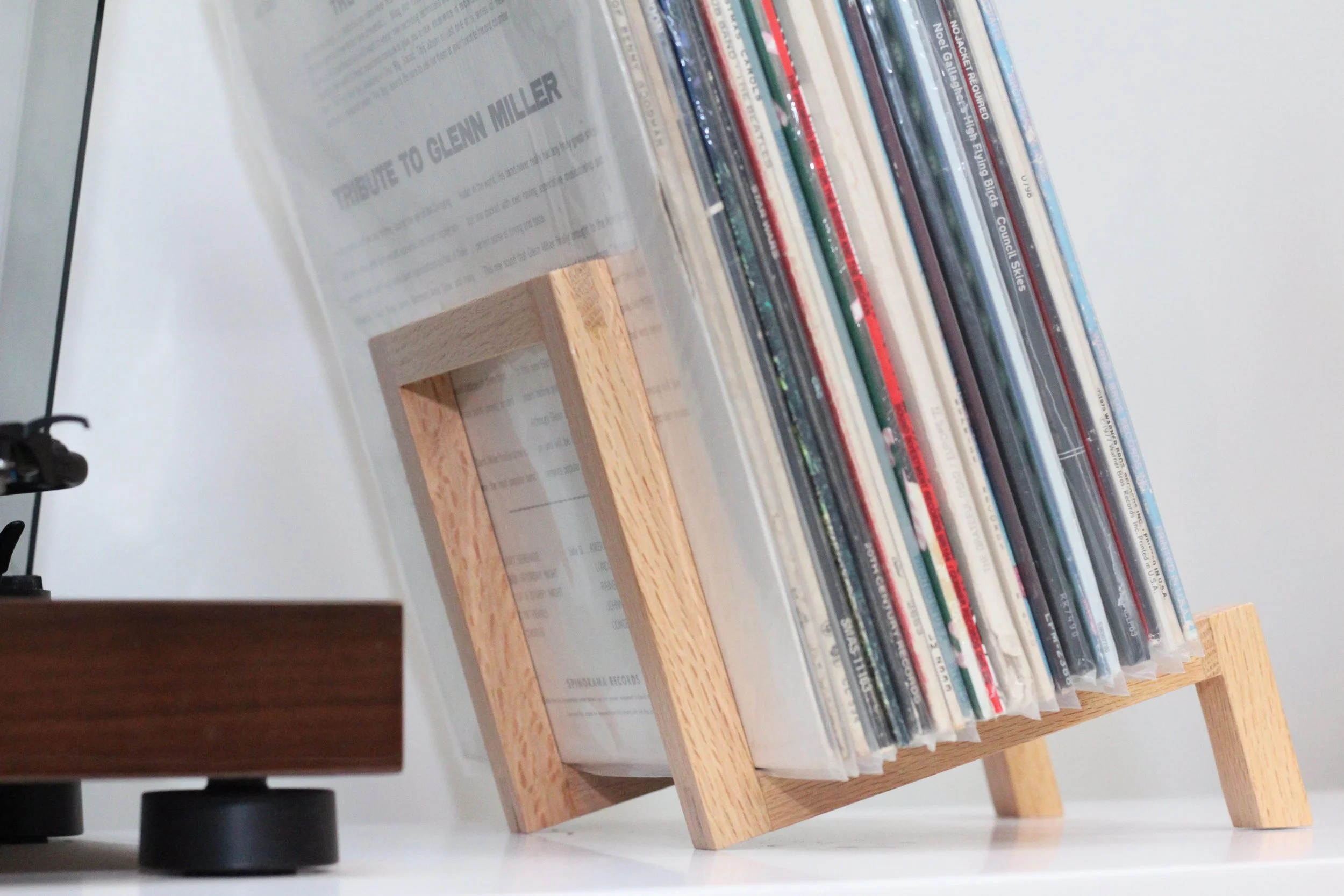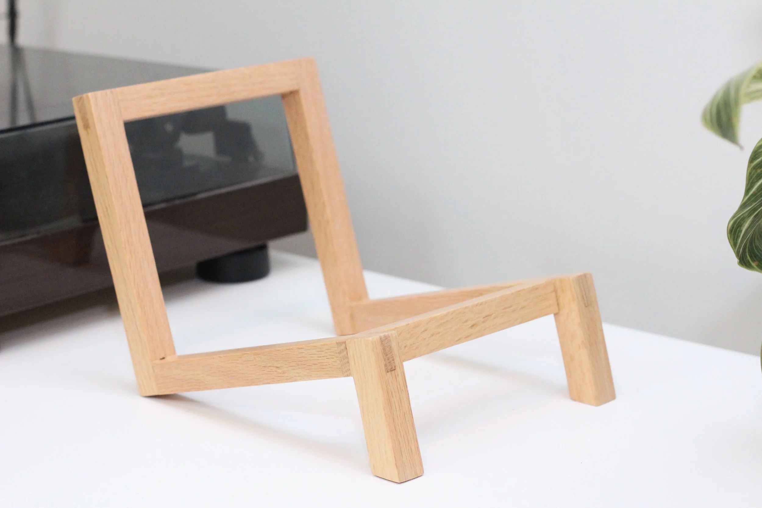 This little piece clocks in at just over six inches tall but packs a ton of fun joinery details. Through-tenons create contrasting end grain and structural integrity. That integrity is important because vinyl records weigh a lot more than we expect, and let’s be honest: it’s fun to put them on display.